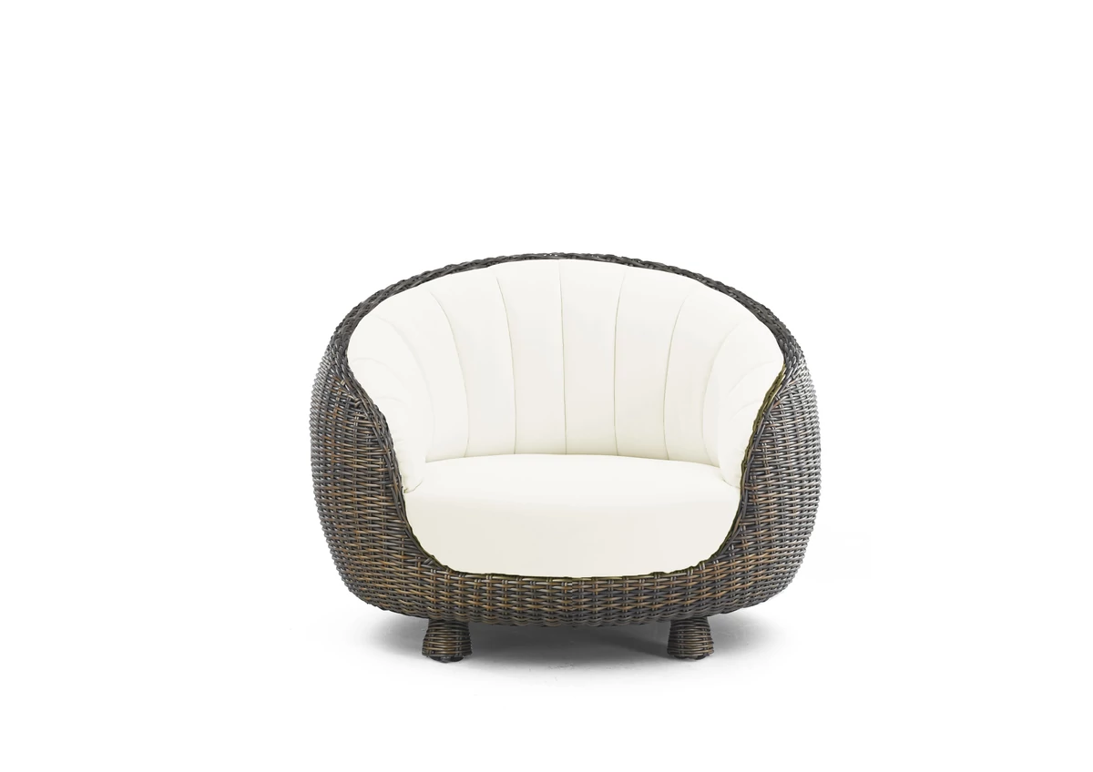 Magas minőségű, időjárásálló, kényelmes polyrattan kültéri fotel.