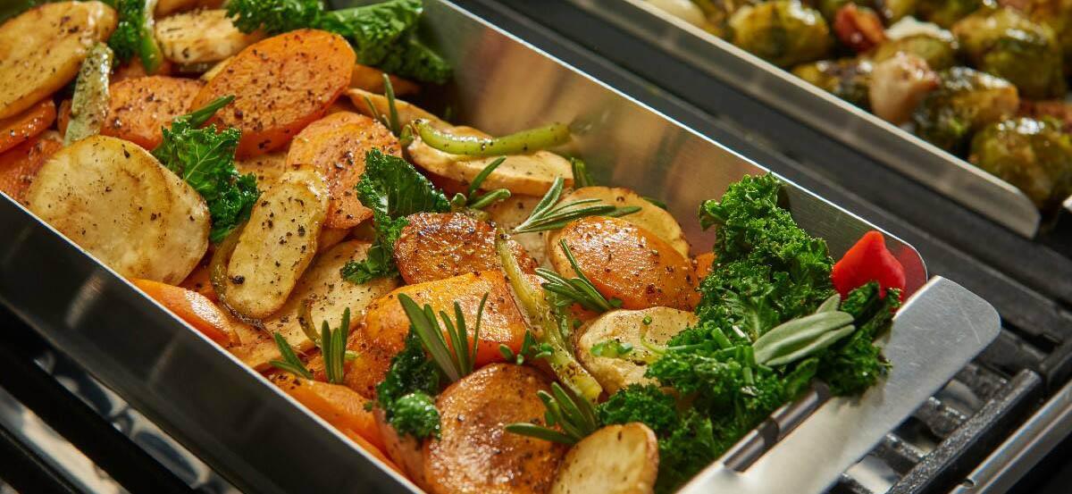 A zöldségek kiváló kiegészítői lehetnek a húsoknak, vagy akár önálló ételként is fogyaszthatók. Az edények lehetővé teszik, hogy egyszerre többfélét is elkészítsünk. Használhatunk például grillkosarakat, amelyekben különböző zöldséget összekeverve megsüthetünk, hogy aztán önmagukban vagy akár köretként is tálalhassuk őket.