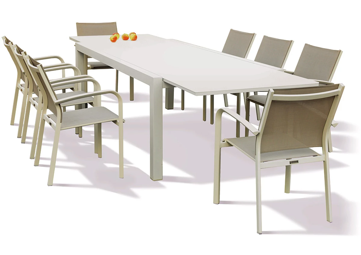 A Livorno bővíthető étkezőasztal körül az egész család kényelmesen ebédelhet a teraszon. Ha épp nem használjuk, becsukva tágasabb hatást kelt teraszunk.