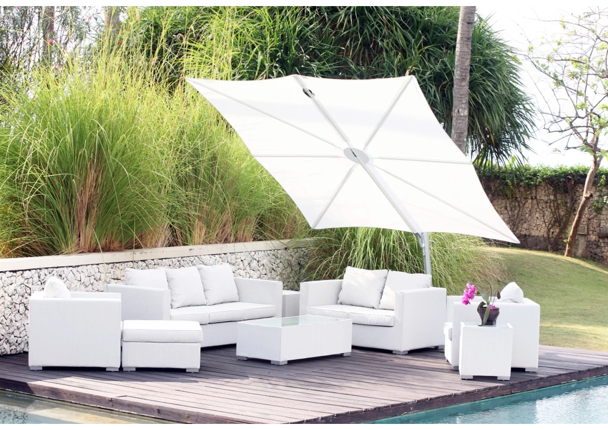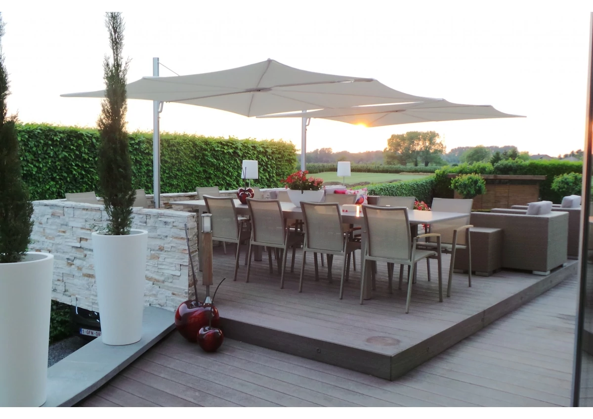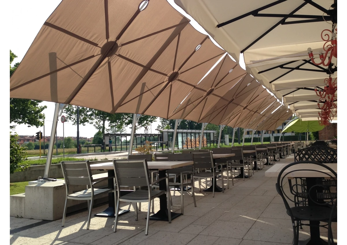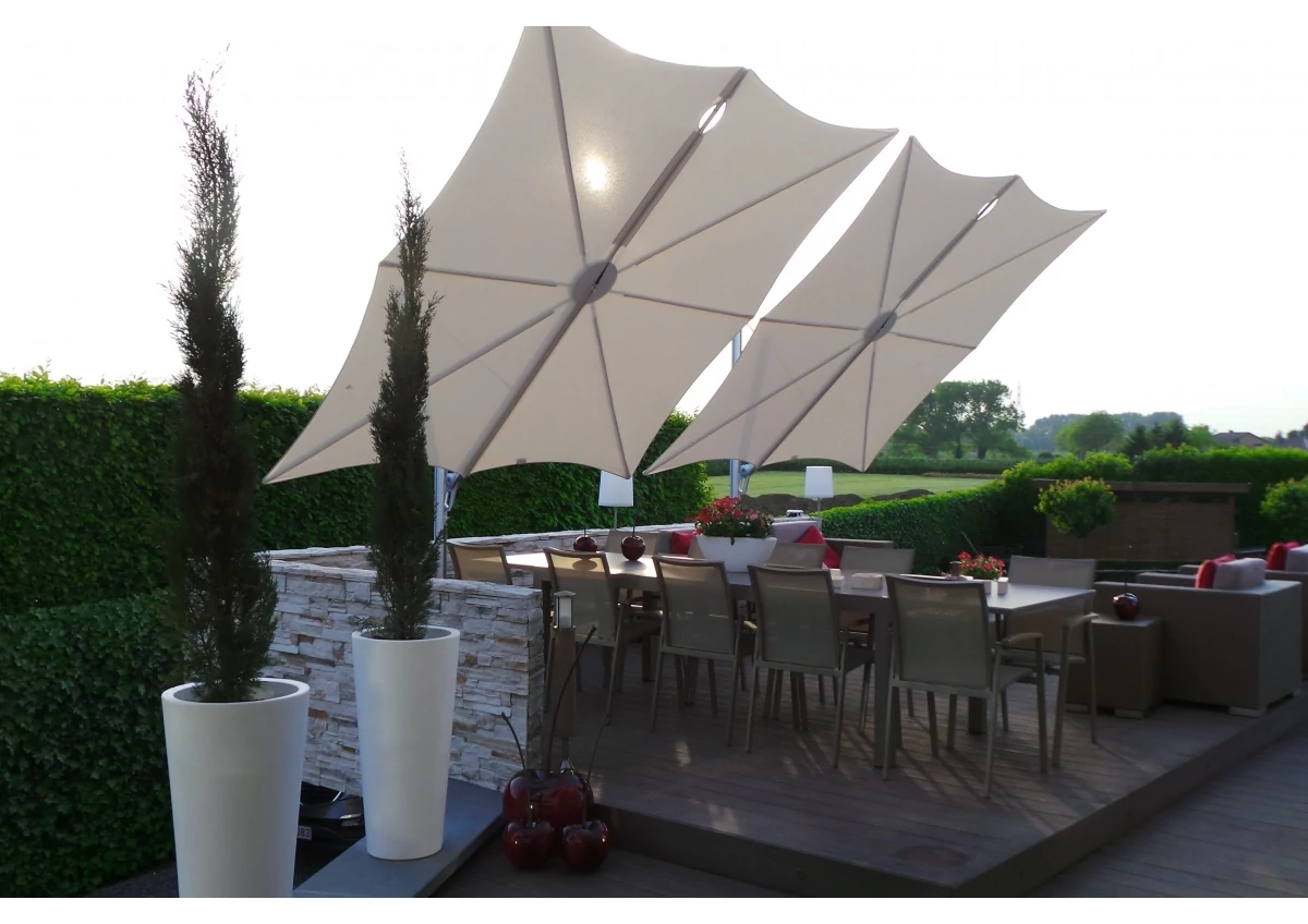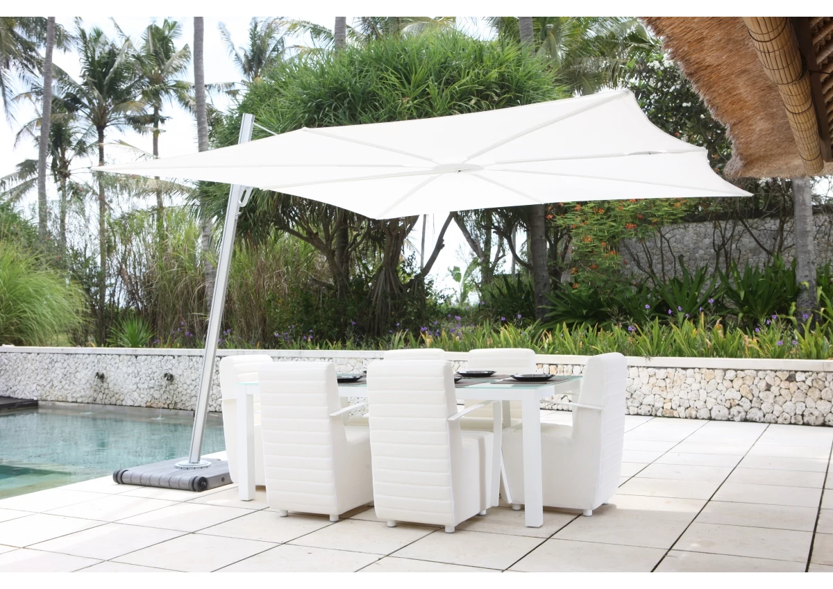 Az Umbrosa Spectra napernyő egyedülálló, szokatlan formájával és prémium minőségével emelkedik ki. Innovatív kialakítása lehetővé teszi a napernyő sokféle pozicionálását, biztosítva a stílusos és hatékony árnyékolást bármilyen kültéri környezetben.